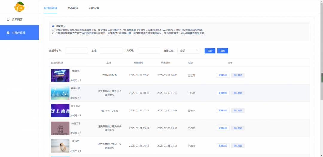 官方小程序直播有着操作简单、免流量费的优势,但数据统计是薄弱的环节,本次特别针对小程序直播新增了数据统计功能。